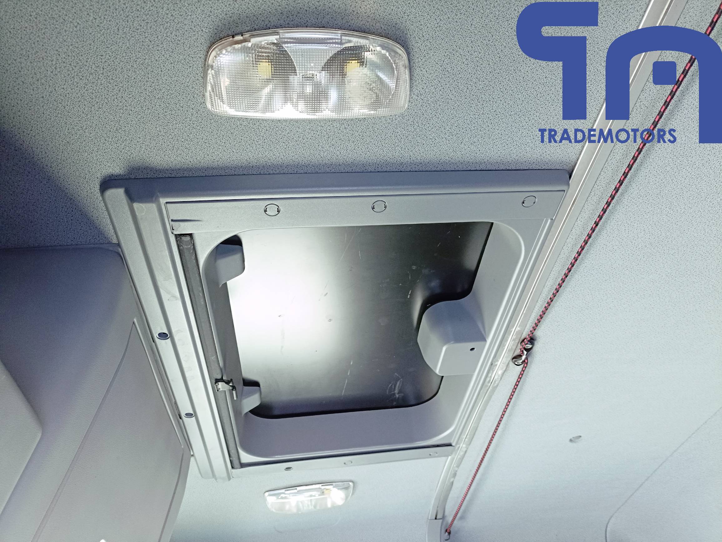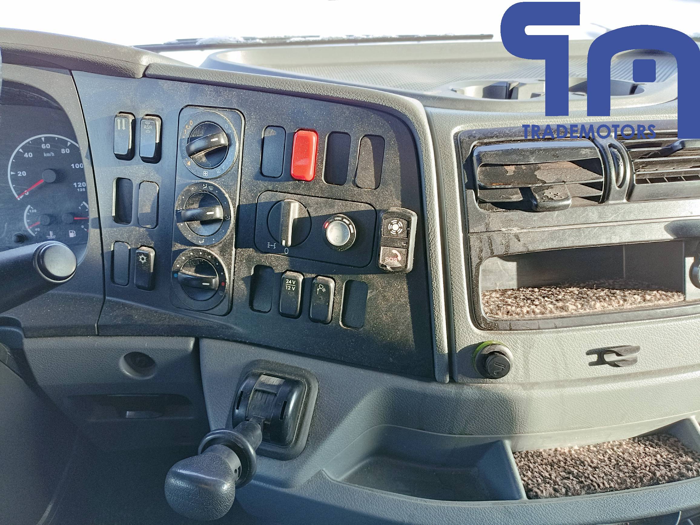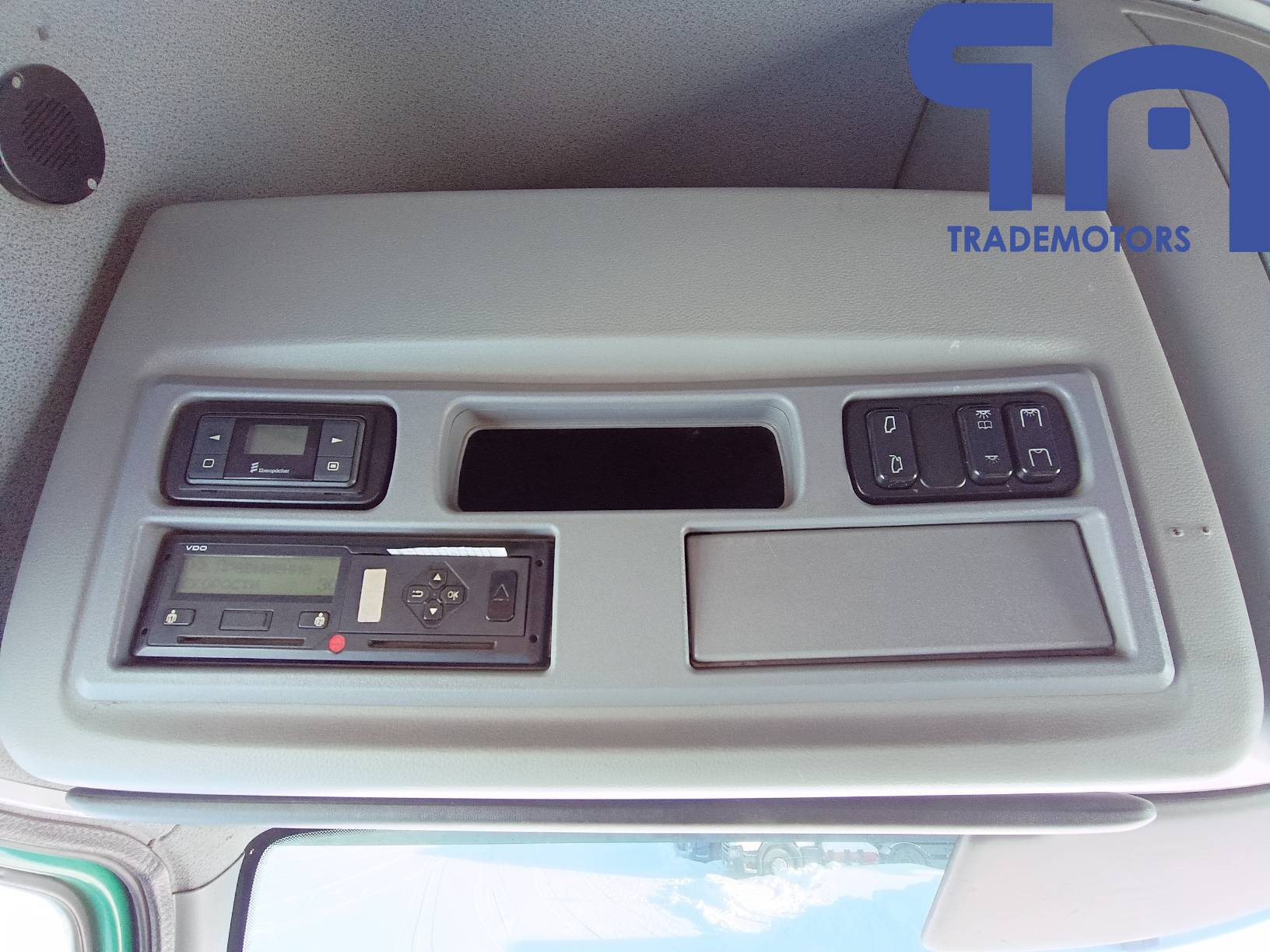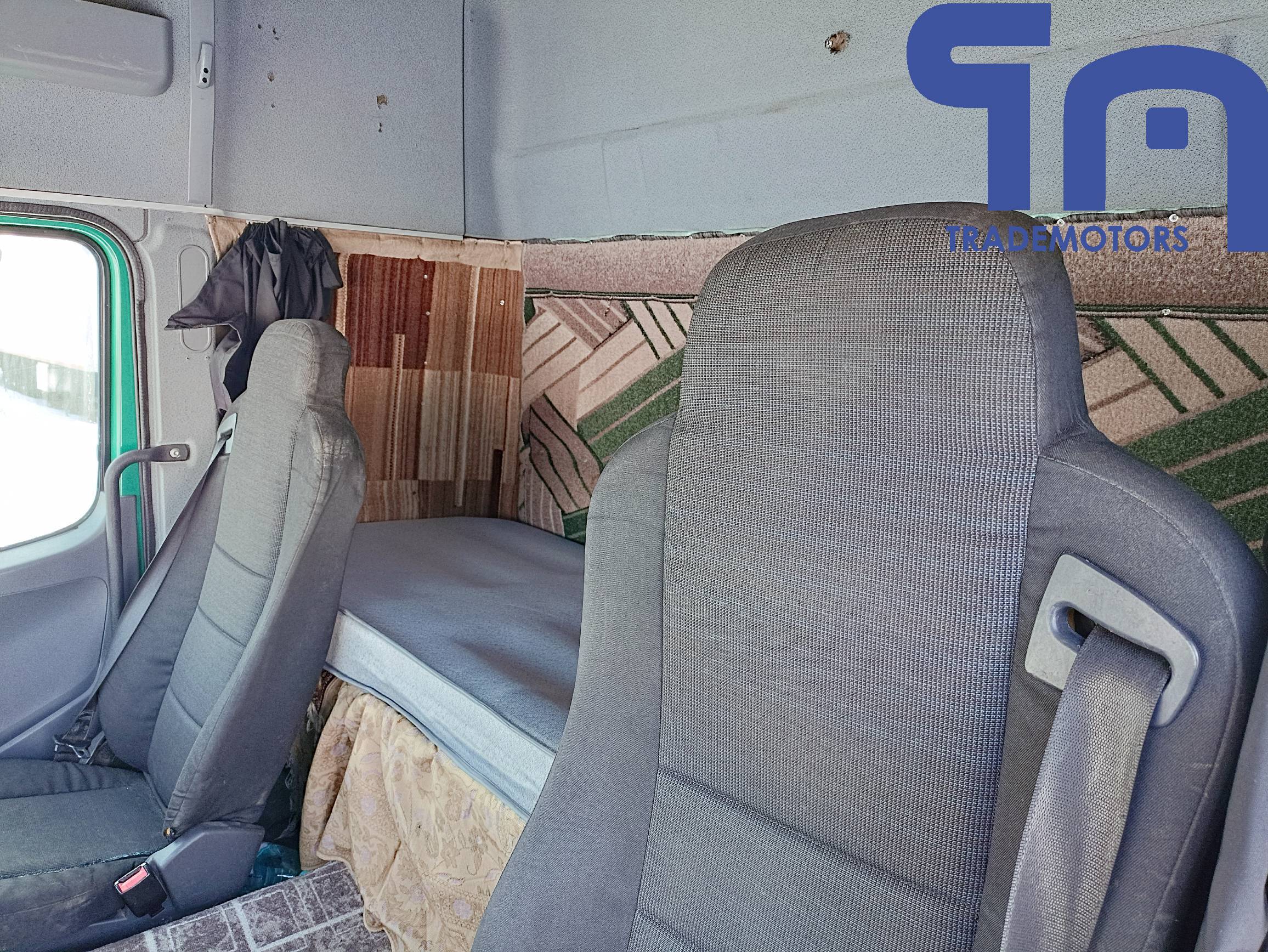 спойлер, солнцезащитный козырёк, противотуманные фары, радио, электро-регулируемые наружные зеркала с подогревом, кондиционер, электростеклоподъемники боковых дверей, центральный замок, пневмоподвеска кресла водителя, тахограф, люк.