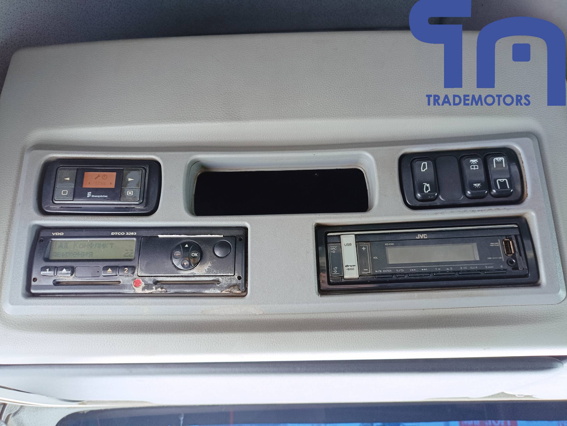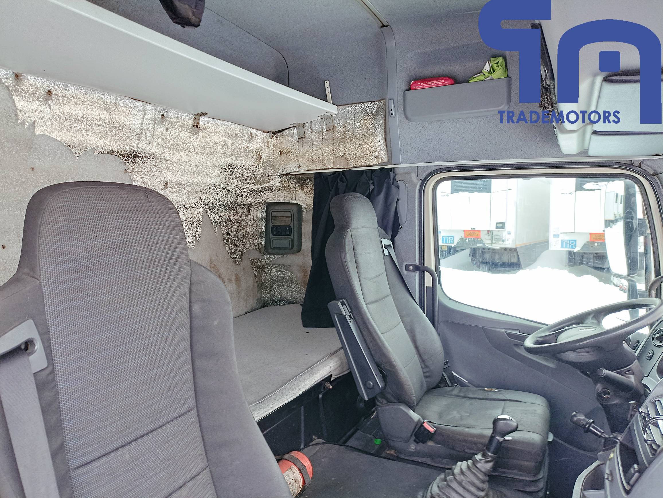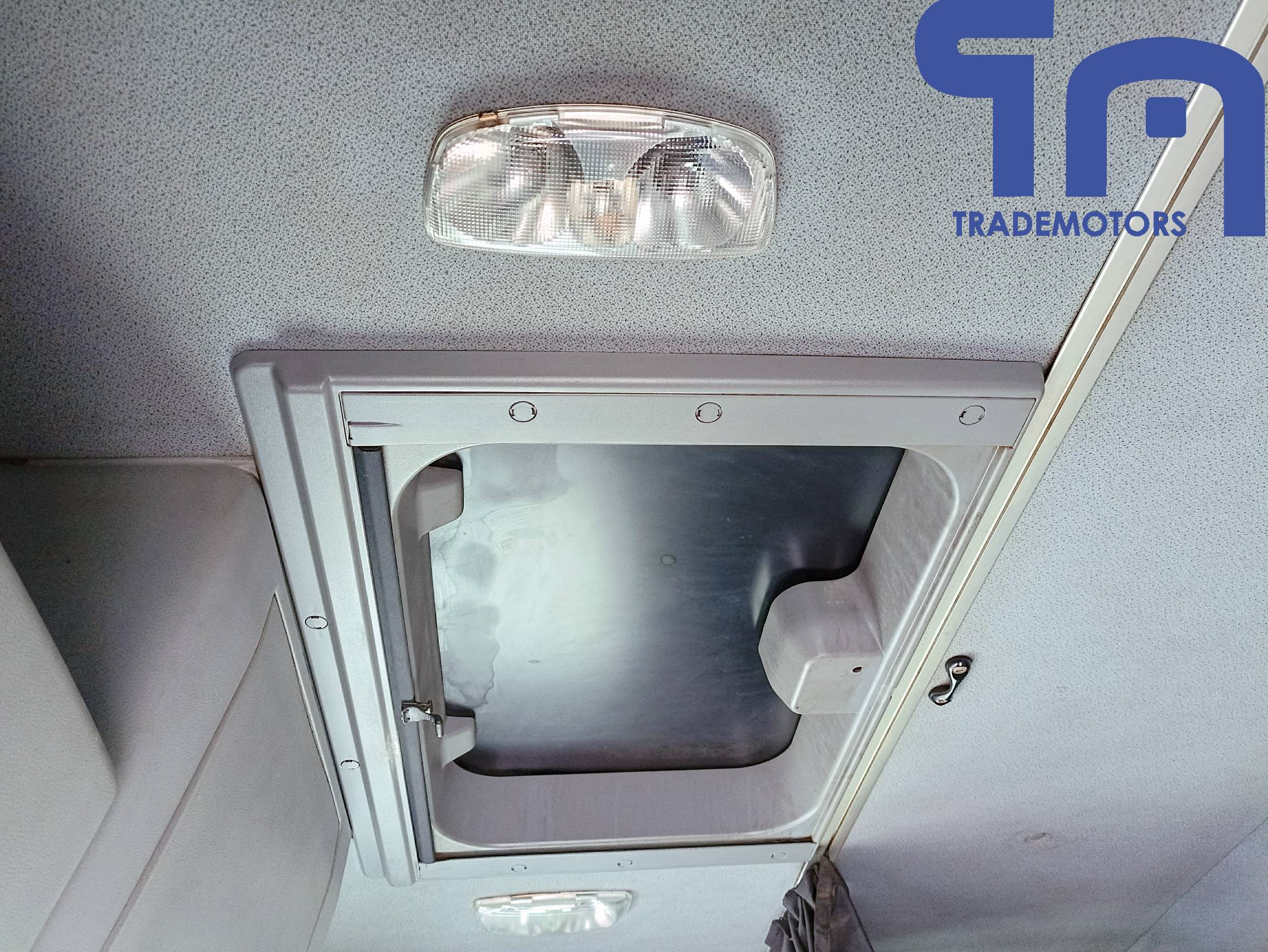 спойлер, солнцезащитный козырёк, противотуманные фары, радио, электро-регулируемые наружные зеркала с подогревом, кондиционер, электростеклоподъемники боковых дверей, центральный замок, пневмоподвеска кресла водителя, тахограф, люк.