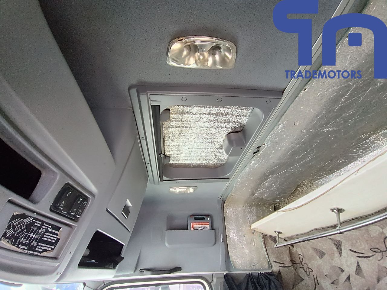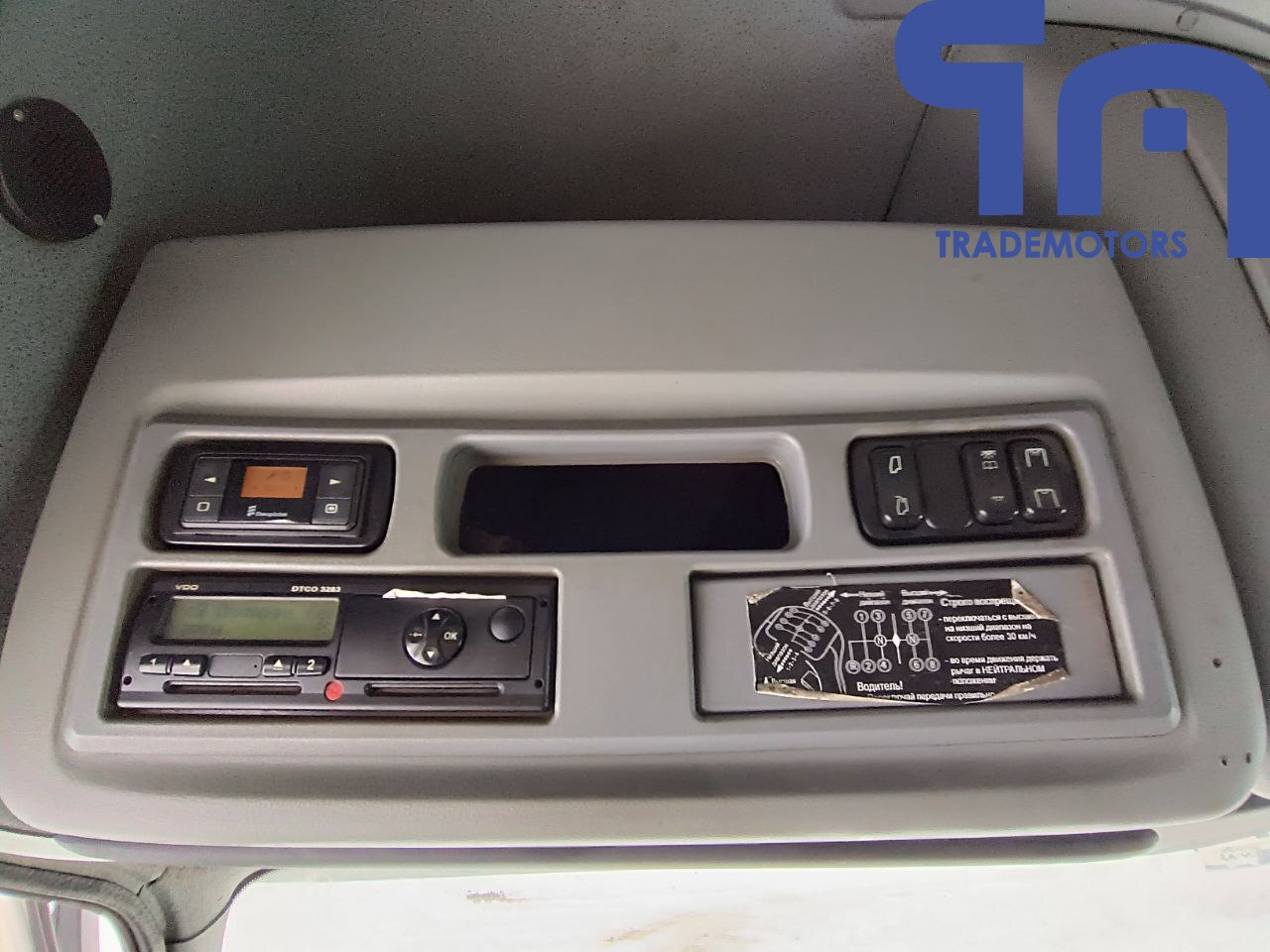 спойлер, солнцезащитный козырёк, противотуманные фары, радио, электро-регулируемые наружные зеркала с подогревом, кондиционер, электростеклоподъемники боковых дверей, центральный замок, пневмоподвеска кресла водителя, тахограф, люк.
